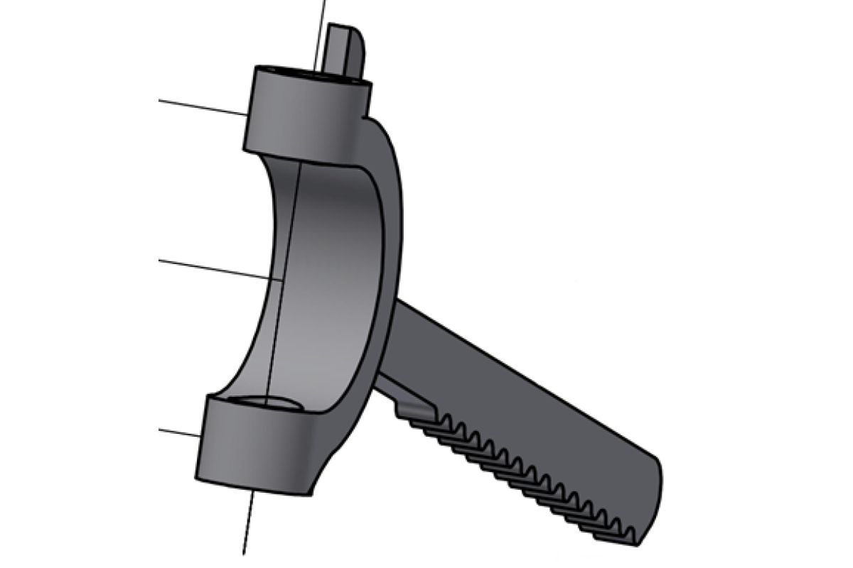 Cette pièce de fonte fait partie d’un appareil de voirie permettant de changer le sens d’un aiguillage. Sa crémaillère permet d’adapter la place du contrepoids pour faciliter la manipulation de l’appareil.